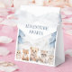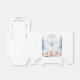 This cozy design was inspired by a peaceful mountain morning, where tiny woodland friends gather beneath cool blue pines and snowy peaks. The soft watercolor animals and calm blue tones create a gentle, storybook look that makes this favor box a charming keepsake for guests to take home after the celebration.
