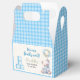 Celebrate your little boy on the way with this adorable teddy bear baby shower invitation. Featuring a cute blue and white design with a bear, bottle, and balloons, this "We Can Bearly Wait" theme is perfect for welcoming your baby in style.