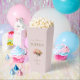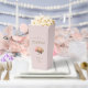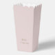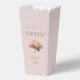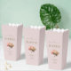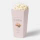 Delight wedding guests with a surprise midnight snack. This lovely wedding favor popcorn box features a floral rose bouquet and contemporary set of fonts in olive green, against a blush pink background.