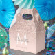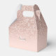 Jolie boîte cadeau rose gold pailleté pour fille, élégant nom en écriture et monogramme sur fond rose blush. Conçu par Thisisnotme©