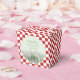 Ces mignons Ballotins de Merci d'anniversaire de Grasshopper présentent un arrière - plan à damiers rouge et blanc tout autour, capturant l'essence d'une charmante scène de pique-nique, avec une sauterelle verte cachée dans l'herbe haute avec des coccinelles rampant autour. Personnalisez avec un message de Merci et un nom.