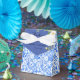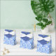 Les carreaux citron et bleu Boho sont présents sur la ballotin chic. Ce souvenir est idéal pour un mariage à thème d'aventure, de voyage, d'Italie ou à l'étranger.