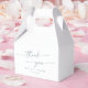 Ces boho chic ardoise bleue merci boîtes de faveur mariage sont parfaites pour un mariage minimaliste. Le design bohème moderne, bleu et blanc pâle et poussiéreux, se compose d'une calligraphie rustique simple au style unique mais classique. Personnalisez vos ballotins avec vos noms et votre date de mariage.