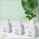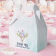 Boîtes de faveur d'anniversaire avec un fond aquarelle turquoise et pastel. Un crâne d'animal boho chic avec un bouquet floral sur la tête et de petits papillons voltigeant autour.