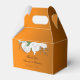 Cette boîte de faveur de mariage orange avec un beau bouquet de roses blanches à l'avant et à l'arrière est parfait pour votre journée spéciale. La partie avant de la boîte contient le texte personnalisé avec les mots "merci", les noms de la mariée et du marié et la date du mariage. Ce ballotin est parfait pour tenir de petits articles comme des bonbons ou des bibelots. C'est une excellente façon de montrer à vos invités combien vous appréciez qu'ils fassent partie de votre journée spéciale.