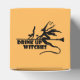 Conception avec le dicton "Buvez des sorcières" avec une sorcière sur un balai avec un chat et un martini.