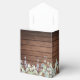 Une boîte rustique de mariage avec des feuilles délicats de sauge et d'aquarelle lilas, des lampes à cordes et des jarres de maçon sur un arrière - plan de panneaux de bois. Vous pouvez personnaliser avec votre propre message de remerciement au contraire. Une façon parfaite de remercier vos invités ! Conçu par Thisisnotme©