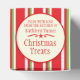 Boulangerie à rayures rouge et vert mignonne, idéale pour les fêtes d'échange de biscuits de noël ou pour la vente de vos produits maison au marché fermier et foires artisanales à l'heure de Noël. Utilisez ces boîtes pour donner des échantillons de nourriture de vos délices cuisinés de Noël. Idée pour les petits cadeaux que l'on donne aux autres ou pour les faveurs des enfants à la famille et aux amis. Lit actuellement Fabriqué avec amour de la cuisine de Kathleen Turner Noël Traitements. Entièrement personnalisable pour personnaliser avec votre propre nom, et les détails du produit. Uniquement conçu par Sarah Trett.