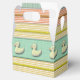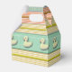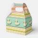 Des couches de rubans grosgrain et en vichy et de cordon satiné tordu courent au-dessus et au-dessous d'une charmante ligne de petits "canards dans une rangée". . .. dans l'une ou l'autre direction. Les doux jaunes, les oranges et les verts font de ce design un naturel pour les bébés et les baby showers. En tant que ballotin, vous pouvez le remplir avec des bonbons ou d'autres confections ou des prix pour les invités de votre baby shower. Comme une boîte cadeau, elle est juste assez grande pour s'adapter à la pacifier appariée, également disponible dans cette collection, ou un charmant nouveau-né ou des bottes coordonnées couleur.