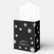 Cette boîte à cadeaux élégante est noire de minuit, accentuée de flocons de neige et d'un magnifique script ruban, qui est facile à personnaliser.