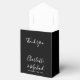 Élégante boîte de faveur de mariage noir et blanc avec des noms de script de signature élégant et date spéciale set dans la typographie moderne. Vous pouvez personnaliser avec votre propre message de remerciement sous le couvercle. Une façon parfaite de remercier vos invités ! Conçu par Thisisnotme©