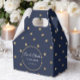 Boîtes de faveur bleu marine avec motif de points dorés Glam Chic pour mariage, douche de mariée, dîner de répétition, dîner de couple. Utilisez l'option de personnalisation de ce modèle pour changer le texte | Utilisez l'option de personnalisation avancée pour changer le style, la taille et la couleur du texte si nécessaire. Si vous n'avez pas besoin de texte, supprimez-le.