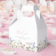 Boîtes de faveur de douche nuptiale fleur sauvage qui présentent des graphiques de fleurs de prairie à l'aquarelle avec une palette de couleurs douces et atténuées et une police moderne. Elles sont parfaites pour une douche nuptiale sur le thème de l'amour en fleurs et vous pouvez les associer à tout ce qui se trouve dans la collection ELODIE pour un look cohérent.