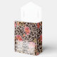 Un dessin sauvagement amusant de fleurs rose chaud et de taches de léopard noir sur taupe, ces boîtes de faveur de fête de style tente avec fermeture à ruban, comportent votre message sur le devant. Parfait pour les douches de mariée, les fêtes de bébé, les fêtes d'anniversaire ou toute occasion spéciale. PAPIER DE SOIE ASSORTI et plus d'articles dans notre magasin.