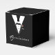 La conception de la boîte de faveur de garçon d'honneur personnalisable présente l'apparence d'un smoking comme conception principale. Le mot "Garçon d'honneur" peut être changé pour lire Témoin, Huissier, ou autre. Commandez ensemble avec la conception "Mariée" coordonnée, remplacez le texte par les noms du couple, et vous avez les faveurs de mariage ou de douche parfaites.