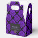 Purple Damask-Un élégant damas violet foncé et noir couvre tout le ballotin. Sur le côté avant de la boîte se trouve une étiquette décorative avec un motif damassé. Deux zones de texte sont en place pour que vous puissiez personnaliser avec. Actuellement, le texte dit : INVITÉ et un petit quelque chose juste pour vous. Modifiez ces zones pour convenir à votre occasion. Si vous ne voulez pas que le texte soit juste SUPPRIMER les zones de texte et la balise, laissant juste l'arrière - plan damassé. Cette conception est en coordination avec les autres produits du magasin intitulé : Purple Pearl Damask. La coordination des fournitures de la partie Zazzle est disponible.