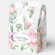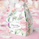 Cette boîte de faveur de mariage est présentée dans un beau design d'impression florale multicolore. Affiché avec des exemples de noms et de date.