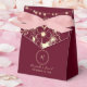 Élégante, rustique, boîte de faveur de mariage bordeaux marsala boho avec monogramme, dentelle florale dorée, guirlande lumineuse et écriture calligraphique moderne. En combinaison avec l'autocollant de sceau de cire de la même collection, il est possible de créer un reflet plus fort de la personnalité du couple, de l'histoire d'amour et de l'unicité.