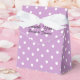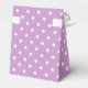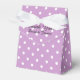 Boîte de faveur de mariage personnalisée. Lavande violet imprimé avec motif pois blanc. Message de remerciement personnalisé de la mariée et du marié. Impression polkadot mignonne avec élégant ruban blanc. Couleur arrière - plan personnalisable.