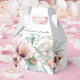 Belle boîte de faveur de mariage avec des pavots rose pâle et ivoire et de la verdure. Personnalisez avec votre propre nom et date.
