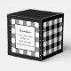 Boîte de faveurs en forme de cœur à carreaux de bison noir et blanc. Le texte au dos de la boîte est personnalisable. Si vous utilisez le bouton/l'outil 'Modifier le design', vous pouvez également ajouter vos propres images/photos. D'autres coloris sont disponibles.