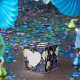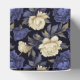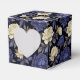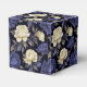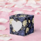 La boîte de friandises de faveur de fête est présentée avec une belle impression florale de pivoines multicolores bleues.
