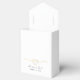 Simple, élégant, minimaliste, moderne blanc et bleu marine boîte de faveur mariage avec les noms de mariée et de mariée, date et coeur de corde or.