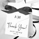 Ce Mariage moderne de Merci Monogram ballotin avec les initiales de la mariée et des mariés, le Merci dans une police de script tendance et les noms du couple heureux et la date mariage tout en noir attaché avec un élégant arc en satin noir serait parfait pour les faveurs à votre réception de mariage. Ce serait très bien pour une confiserie, sur une table-cadeau de remerciement, ou à chaque endroit avec un service. Assurez-vous de commander suffisamment pour tous vos invités.