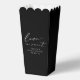 Boîtes de Popcorn Personnalisées pour Mariage avec Calligraphie Moderne, Amour Noir et Blanc, C'est Douceur. Personnalisez avec le nom et la date de la fête.
