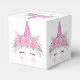 Boîte de faveur de la fête affichée dans une couleur bleu clair avec une jolie impression de licorne rose. Customisez cet article ou achetez tel quel et ajoutez un joli ruban.