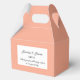 La boîte de faveur de la fête est affichée dans une élégante couleur pêche. Customisez cet élément et modifiez l'exemple de texte sur le vôtre. Astuce : Ajoutez simplement vos bonnes friandises et ajoutez un ruban festif.