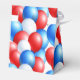 Étoiles patriotiques-Juillet 4 Parti boîte de faveur montré dans un tirage de ballons patriotiques festifs. Customisez cet objet ou achetez tel quel. Astuce : Ajoutez simplement vos bonnes friandises et ajoutez un joli ruban.