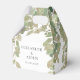 Boîte élégante pour mariage avec un motif doux en feuilles d'eucalyptus vert sauge et beige sur un arrière - plan blanc propre. Personnalisable avec le nom de la mariée et la date de la douche, il est idéal pour des célébrations élégantes et d'inspiration nature. Parfait pour les gâteries, les petits cadeaux ou les surprises de remerciement pour vos invités.