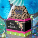 Boîtes de faveur de fête de léopard chic de safari de singe fille. Personnalisez le texte pour tout événement.
