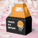 Boîtes de faveurs noir orange pour fête d'anniversaire de basketball.