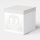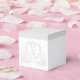 Boîtes de faveur personnalisées pour mariage avec un design élégant pour cygne. Texte personnalisé à l'avant et à l'arrière. Emballage de la grande fête montré en argent foncé. Utilisez le modèle pour créer vos propres boîtes de faveur de mariage personnalisées.