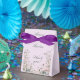 Offrez à vos invités leurs faveurs de remerciement dans cette jolie boîte avec une bordure violette fleur sauvage sur violet. Noms de mariée et de mariée et texte "Merci"