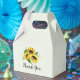 Minuscule ballotin avec un joli bouquet de fleurs aux joyeux tournesols jaunes et feuilles verts. Fraîche et amusante.