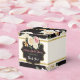 Cette ballotin moderne et chic présente un motif floral coloré avec un arrière - plan noir et une bande d'ivoire et une bande d'or simulée autour du centre avec une zone de texte en forme de crochet noir et doré sur les côtés avant et arrière. Il y a aussi un plus grand bouquet avec de jolis roses en crème, ivoire et rose, avec un lis péruvien orange et un feuillage vert à l'avant et à l'arrière au-dessus du texte personnalisable. Sous le bouquet, le texte coutume dit, "Fête des mariées de Melissa" en rose corail avec la date de l'événement en vert sauge ci-dessous et les mots, "Merci !" en ivoire au fond. Envoyez un courriel à niteowlstudio@gmail.com si vous avez besoin d'éléments correspondants ou si vous avez besoin d'aide pour customiser le libellé.