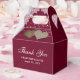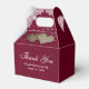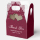Mettez vos cadeaux de mariage ou de douche nuptiale dans ces romantiques ballotins bordeaux rustiques avec dentelle et lampes à cordes sur un arrière - plan burlap.