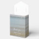 Ce design comprend une bouteille posée sur la plage. La belle couleur de la bouteille bleue contraste avec le sable doré, ce qui en fait un parfait assortiment. La bordure blanche et fine encadre parfaitement la bouteille bleue lavée sur le sable et correspond à la typographie moderne de couleur blanche. Design romantique de plage avec un mélange de simplicité et d'élégance. Ce design est idéal pour une destination balnéaire ou une mariage à thème bleu. Le design ballotin de mariage d'été bleu plage parfait. Des invitations de mariage et d'autres articles de papeterie sont également disponibles.