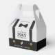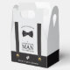 Welcome your distinguished little gentleman in style with these cool baby shower favor boxes for baby boys. Designed with a formal baby bodysuit adorned with suspenders and a fancy bowtie, these boxes are the perfect thank you keepsake to guest for celebrating upstanding young man. Personalize it with your event details for a luxury event that is uniquely yours.