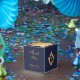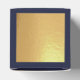 An elegant navy and gold favor box, recommended for a boy's religious confirmation. The flap is mostly faux gold foil. The rest is navy blue.