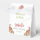 Elegant floral favor box designed for Bridal Shower Bingo Love prizes. This customizable gift bag is perfect to surprise the winners of your bridal shower games with a special treat. Featuring romantic blush pink roses, greenery accents, and the option to personalize with the bride-to-be’s name and event date, it adds a charming and festive touch to your celebration. Ideal for holding small gifts, candy, or keepsakes for game winners and guests.