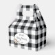 Un ballotin mignon avec un motif en plaid Buffalo noir et blanc et une vache en dessin animé. Personnalisez-les avec votre texte. Idéal pour baby shower et anniversaire de enfant :) © ArianeC Illustrations-Tous droits réservés