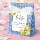 Coordonnez votre thème de citron Main Squeeze parfaitement avec ces magnifiques boîtes de faveur personnalisées. Utilisez le modèle simple pour modifier le texte en cliquant sur «personnaliser ce modèle». Assurez-vous de consulter le reste de la collection Lemon & Mediterranean Tile d'EmmyINK pour plus de papeterie et de décorations de fête personnalisées coordonnées !