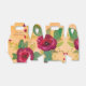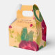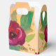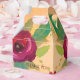 Boîtes de cadeaux pour invités de mariage avec de magnifiques roses burgundy, accentuées d'or, de vert lime et de vert foncé. Le texte peut être personnalisé ou est supprimable.