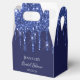 Élégant, classique, glamour pour la fête de mariage. Une couleur de fond bleu marine. Sur le devant et le dos : Personnalisez et ajoutez un nom et une date. Le nom est écrit avec un style d'écriture manuscrite moderne. Décoré de gouttes de paillettes fausses bleues, aspect peinture qui coule.