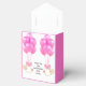 Cadeaux de remerciement pour baby shower de jumelles avec des ballons roses et des jumelles filles. Pour personnaliser, éditez le texte pour ajouter le nom de la future maman.