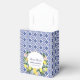Cette boîte à cadeaux pour une fête de baby shower, à la fois charmante, belle et fraîche, présente un design vibrant de citrons aquarellés accompagnés de roses roses délicates, complétés par un motif complexe de carreaux bleus italiens méditerranéens avec une typographie en lettres bleues. Ces boîtes à cadeaux promettent d'apporter l'attrait du charme méditerranéen à votre fête de baby shower. Texte facilement personnalisable et modifiable.